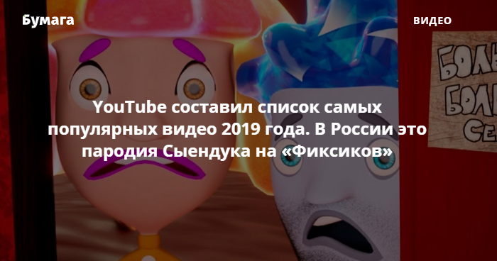 В России самым популярным роликом стала пародия петербургского блогера Сыендука на мультсериал «Фиксики», а также сами выпуски «Фиксиков», ролики Comedy Club и BadComedian, эпизоды шоу «Вечерний Ургант» и «вДудь».