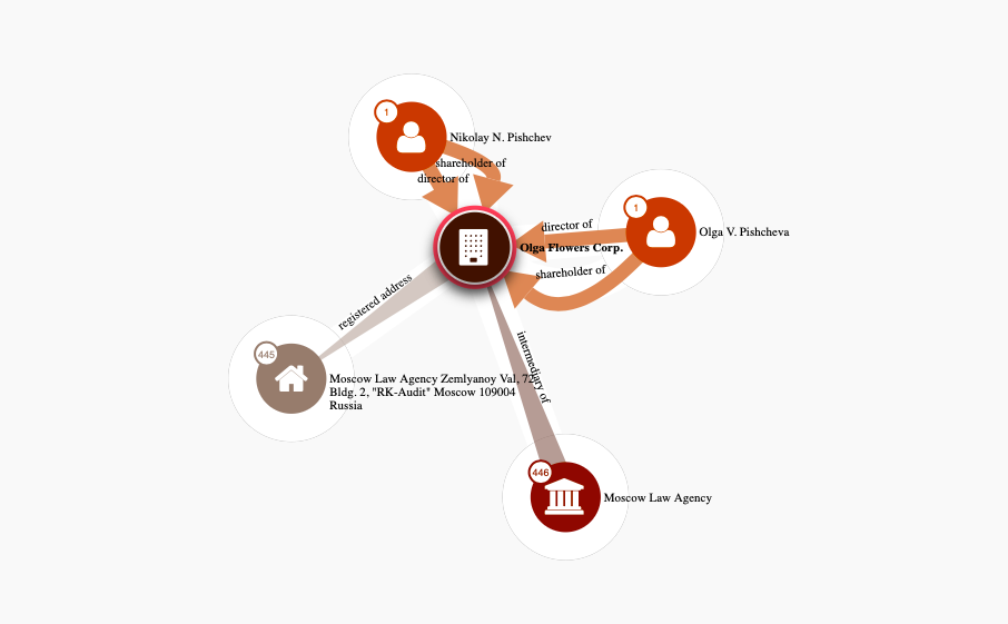 На сайте Международного консорциума журналистов-расследователей ICIJ собрана база данных Offshore Leaks, в которой содержится информация об оффшорных зонах. Начать поиск можно по местоположению. И посмотреть всех директоров и акционеров оффшорных компаний, которые имеют отношение к России. Вам будет доступна не только общая информация, но и наглядная схема, которая покажет связь между компанией, ее адресом, а также акционерами и директорами.