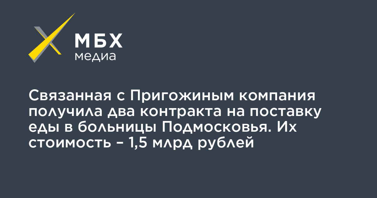 Связанная с Пригожиным компания получила два контракта на поставку еды в больницы Подмосковья. Их стоимость – 1,5 млрд рублей