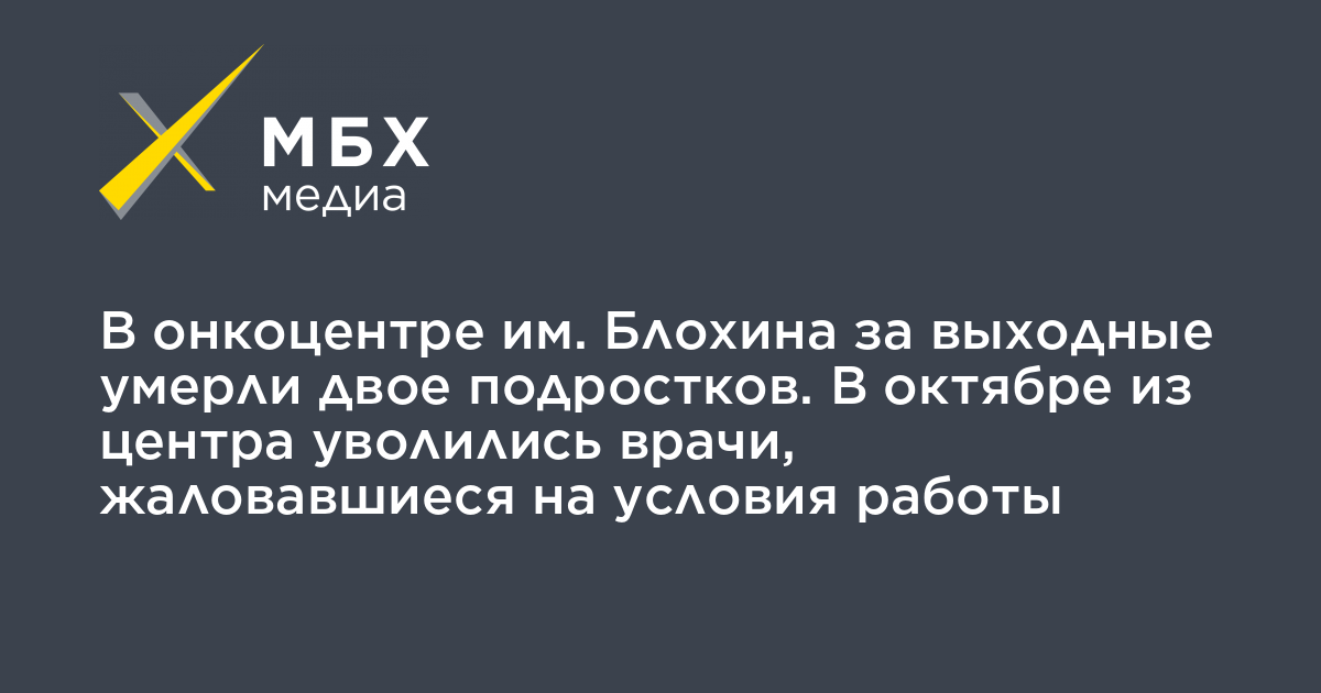 В онкоцентре им. Блохина за выходные умерли двое подростков. В октябре из центра уволились врачи, жаловавшиеся на условия работы