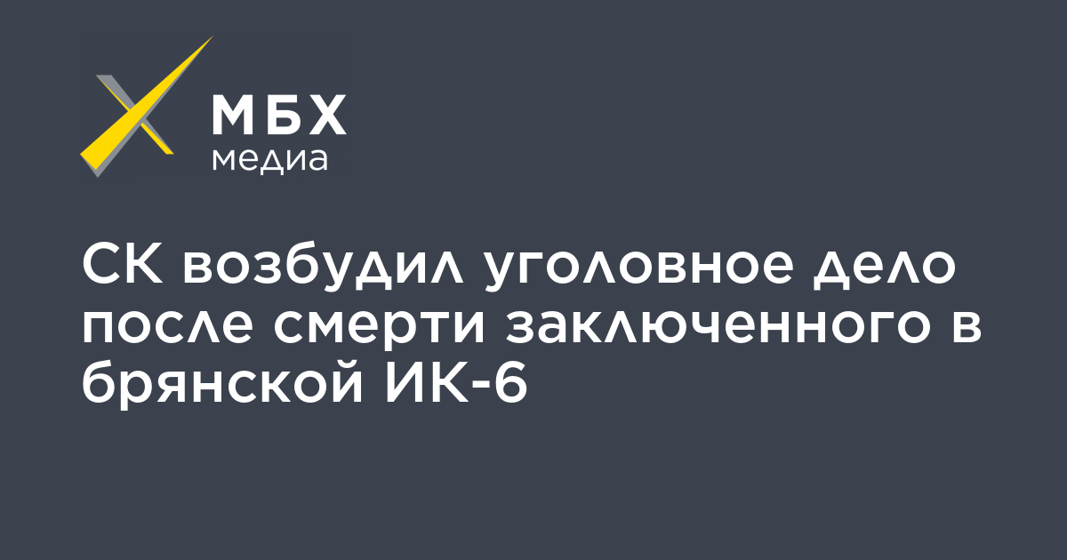Следственный комитет по Брянской области возбудил уголовно дело по ч. 4 ст. 111 УК (умышленное причинение тяжкого вреда здоровью, повлекшее смерть) после смерти 32-летнего заключенного брянской исправительной колонии №6, сообщается на сайте ведомства.