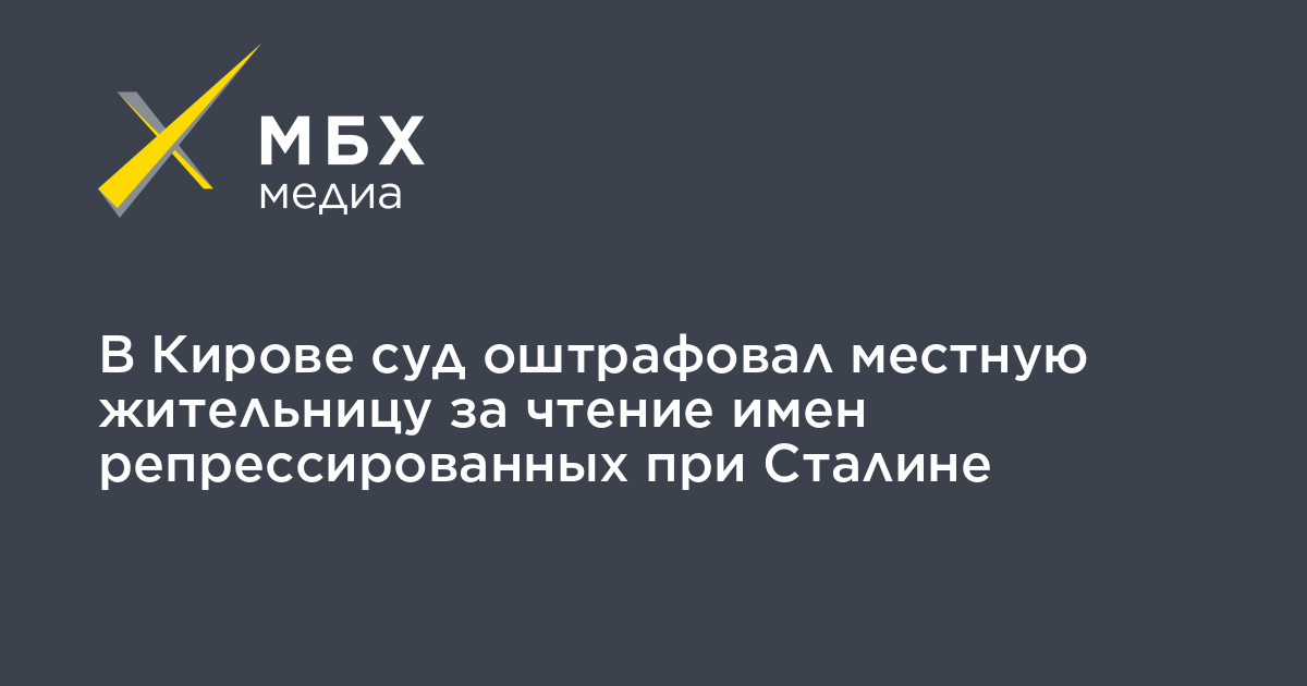 В Кирове суд Октябрьского района постановил оштрафовать активистку Светлану Марину на 5 тысяч рублей за то, что во время акции в память о репрессированных при Сталине она вслух читала имена пострадавших, об этом она рассказала «МБХ медиа».