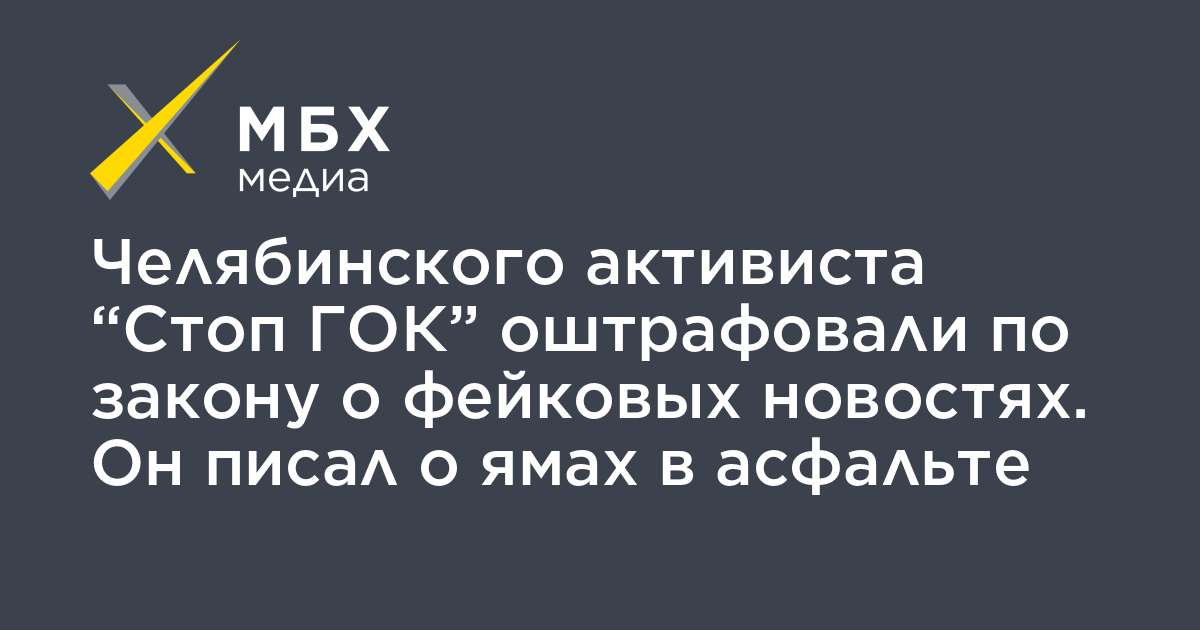 Челябинского активиста «Стоп ГОК» оштрафовали по закону о фейковых новостях. Он писал о ямах в асфальте