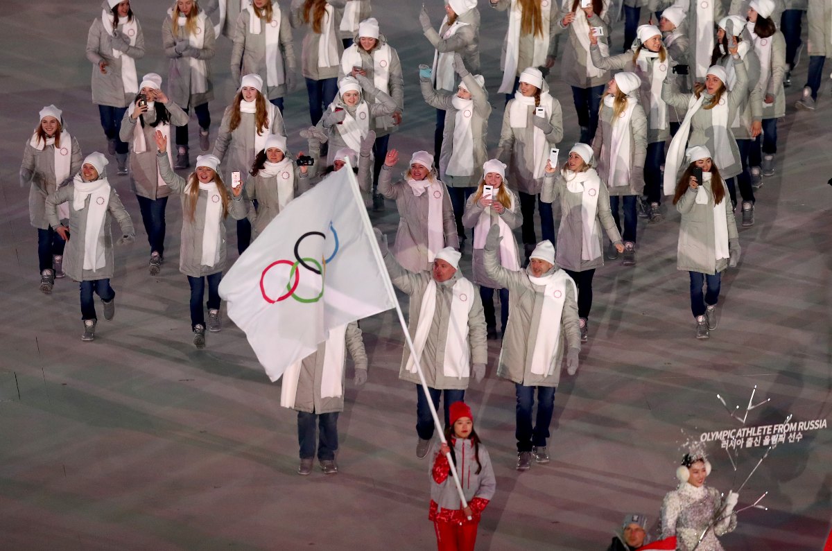 Российские спортсмены под нейтральным флагом на открытии зимней Олимпиады 2018 года в Пхенчхане