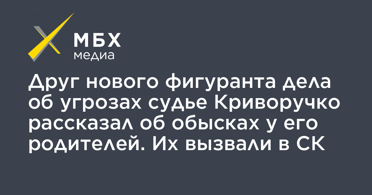 Друг нового фигуранта дела об угрозах судье Криворучко рассказал об обысках у его родителей. Их вызвали в СК