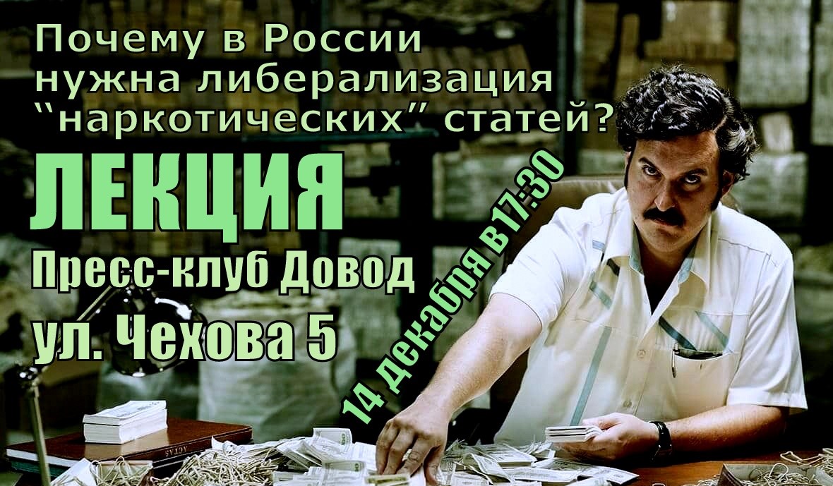 14 декабря в пресс-клубе “Довод” состоится лекция на тему: “Почему в России нужна либерализация «наркотических» статей?”