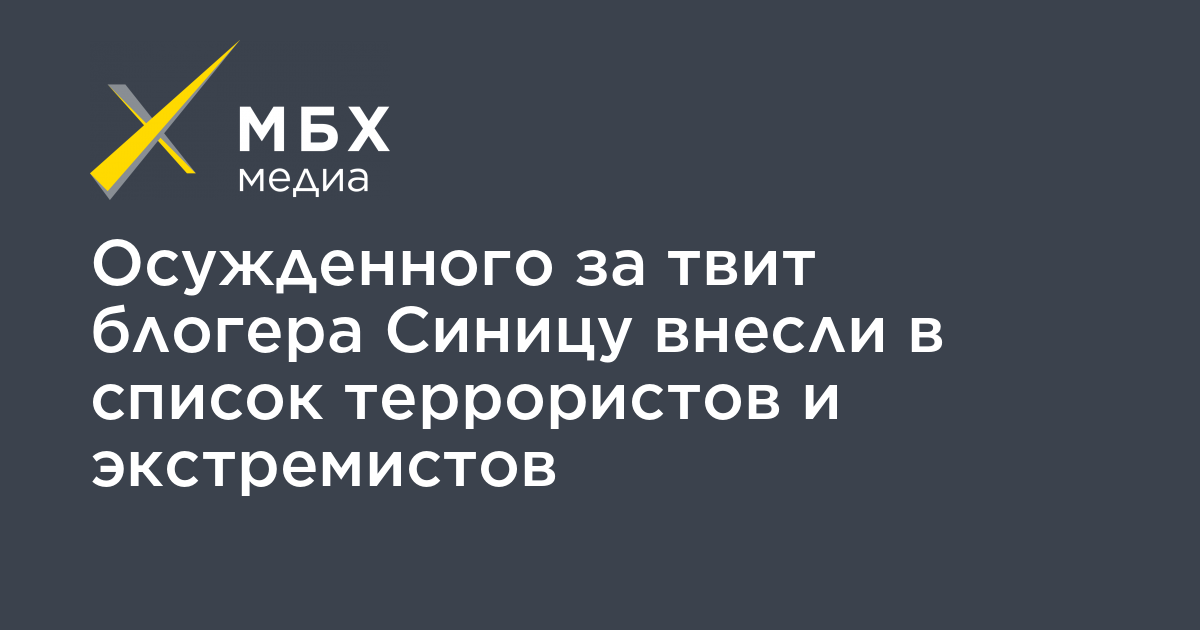 Осужденного за твит блогера Синицу внесли в список террористов и экстремистов