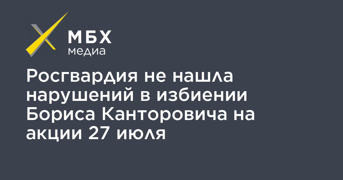 Росгвардия провела проверку и не нашла нарушений в действиях своих сотрудников, которые на акции 27 июля избили москвича Бориса Кантаровича. Об этом Кантарович сообщил у себя в твиттере.