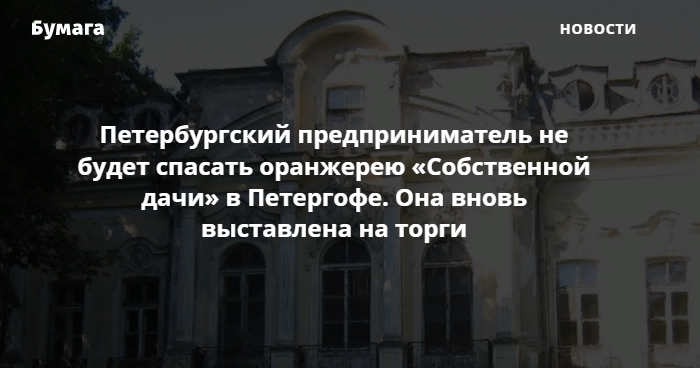 Петербургский бизнесмен не будет спасать Оранжерею в Петергофе