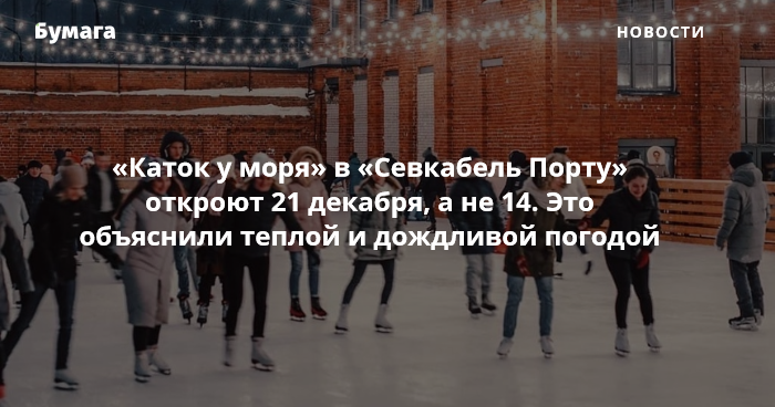 «Севкабель Порт» перенес открытие «Катка у моря» из-за теплой и дождливой погоды, которая стоит в Петербурге. Об этом рассказали представители пространства.