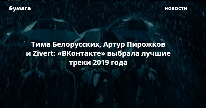 Музыкальные сервисы «ВКонтакте» и Boom опубликовали список самых прослушиваемых треков и альбомов 2019 года. В него вошли такие исполнители как Artik & Asti, Тима Белорусских и Артур Пирожков.