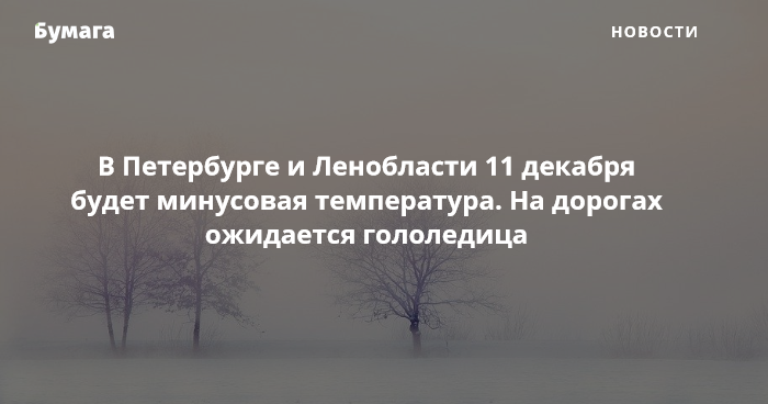 В среду, 11 декабря, температура воздуха в Ленобласти местами опустится до минус 14 градусов. Такие показатели синоптики ожидают ночью, сообщают в МЧС.