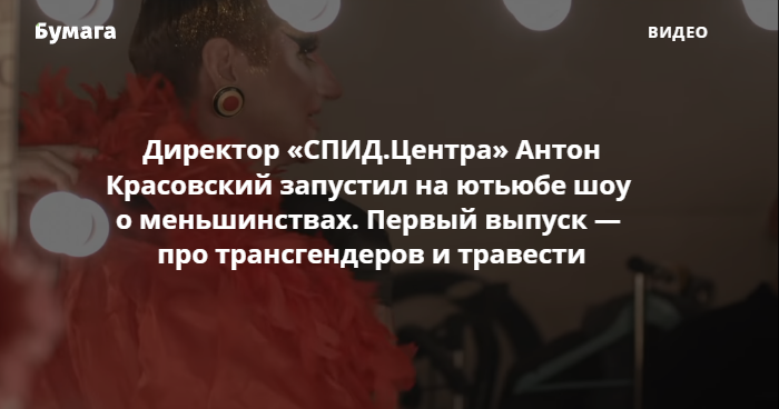 Тележурналист, директор благотворительного фонда «СПИД.Центр» Антон Красовский запустил на ютьюбе свой канал «Крас», на котором обещает рассказывать о меньшинствах в России. Об этом он написал в своем телеграм-канале.