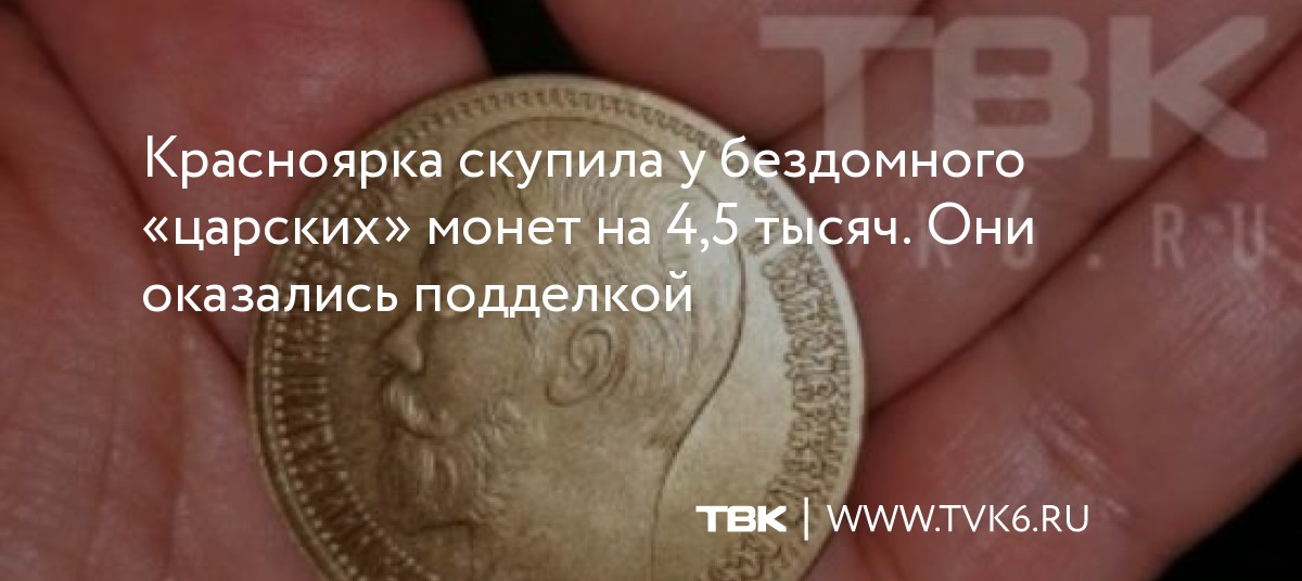 Жертвой обманщиков стала красноярка по имени Людмила. 11 декабря к ней возле ТЦ «Мега» подошел бездомный и попросил посмотреть в интернете цену на царские монеты с изображением Николая II.