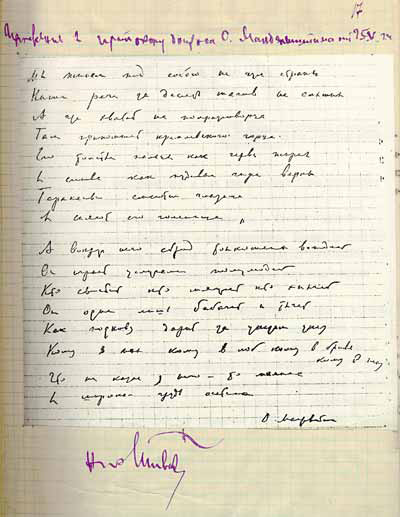 P.S. О Мандельштаме пишу еще раз / на об[ороте] потому, что Борис Пастернак в полном умопомрачении от ареста М[андельштам]а и никто ничего не знает.