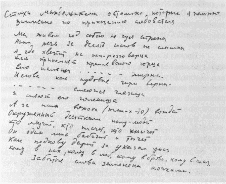 Автограф стихотворения О.Э. Мандельштама «Мы живем, под собою не чуя страны...» из следственного дела 1934 года. ЦА ФСБ «Никто ничего не знает»