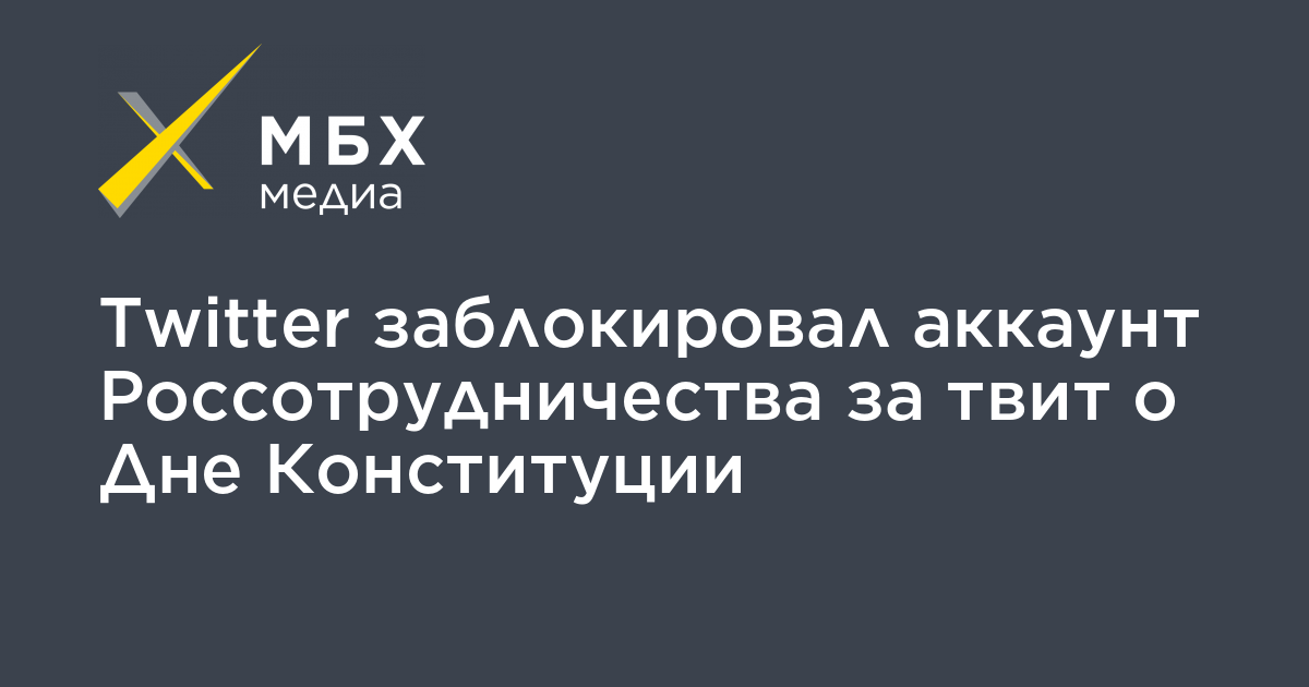 Twitter залакировала аккаунт Россотрудничества (Федеральное агентство по делам СНГ, соотечественников, проживающих за рубежом, и по международному гуманитарному сотрудничеству) из-за публикации о Дне Конституции, сообщает РИА «Новости» со ссылкой на пресс-службу агентства.