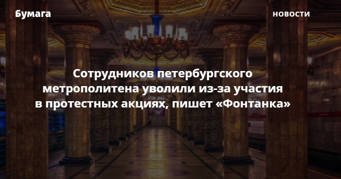 Сотрудников Петербургского метрополитена уволили из-за участия в протестных акциях, пишет «Фонтанка»