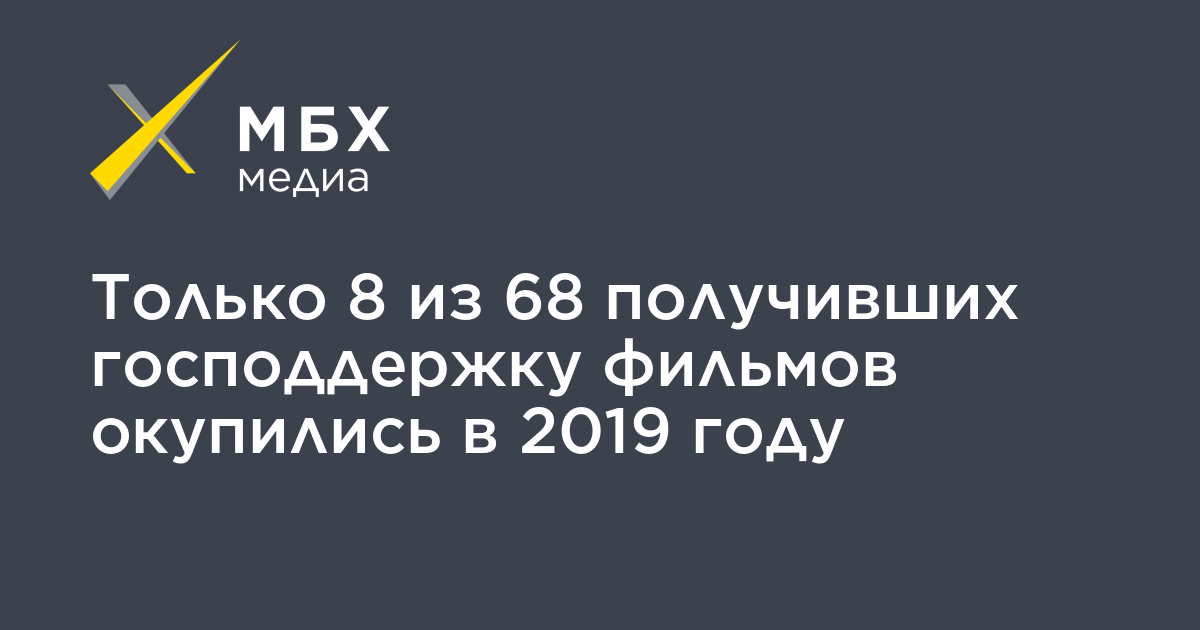 В период с января по ноябрь 2019 года только восемь фильмов из 68, получивших господдержку, окупились в прокате. То есть каждая восьмая лента, подсчитал РБК.