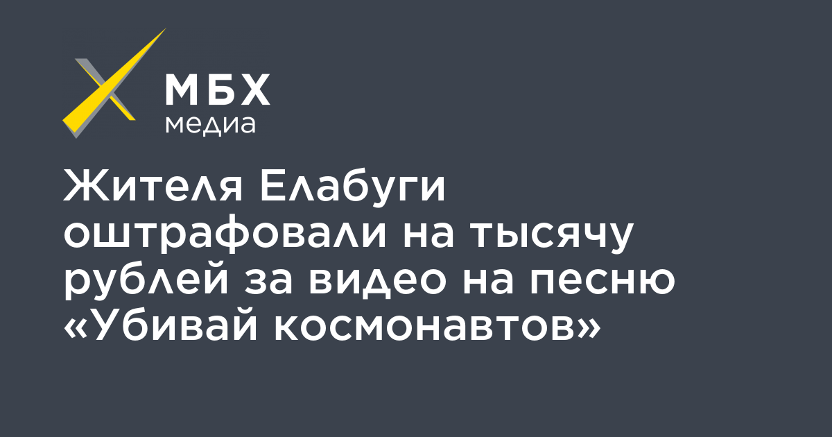 Елабужский городской суд Татарстана оштрафовал на одну тысячу рублей местного жителя Дмитрия Анисимова, разместившего у себя на станице во «ВКонтакте» видео на песню «Убивай космонавтов» группы «Ансамбль Христа Спасителя и Мать Сыра Земля». Соответствующее постановление «МБХ медиа» обнаружило в картотеке суда.