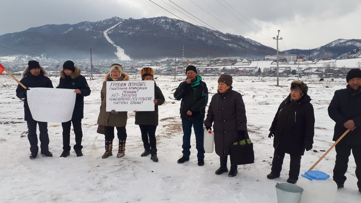 В ноябре жителям района сообщили, что в ходе "оптимизации" учреждений здравоохранения будут закрыты Черно-Ануйская и Усть-Кумирская участковые больницы. Люди уверены, что для села, где много пожилых людей, это – "реальная опасность". "Жители боятся, что останутся без нормального медицинского обслуживания, поскольку в горных условиях до этих населенных пунктов "скорая помощь" не всегда успевает вовремя, а в районном центре обычно не хватает койко-мест. 9 декабря в селе Усть-Кан также прошла серия одиночных пикетов против закрытия больниц.
