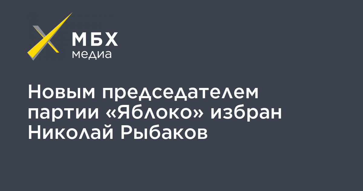 Новым председателем партии «Яблоко» избран Николай Рыбаков. За его кандидатуру проголосовали 69 делегатов ХХI съезда партии. Трансляция велась на Youtube-канале «Яблока».