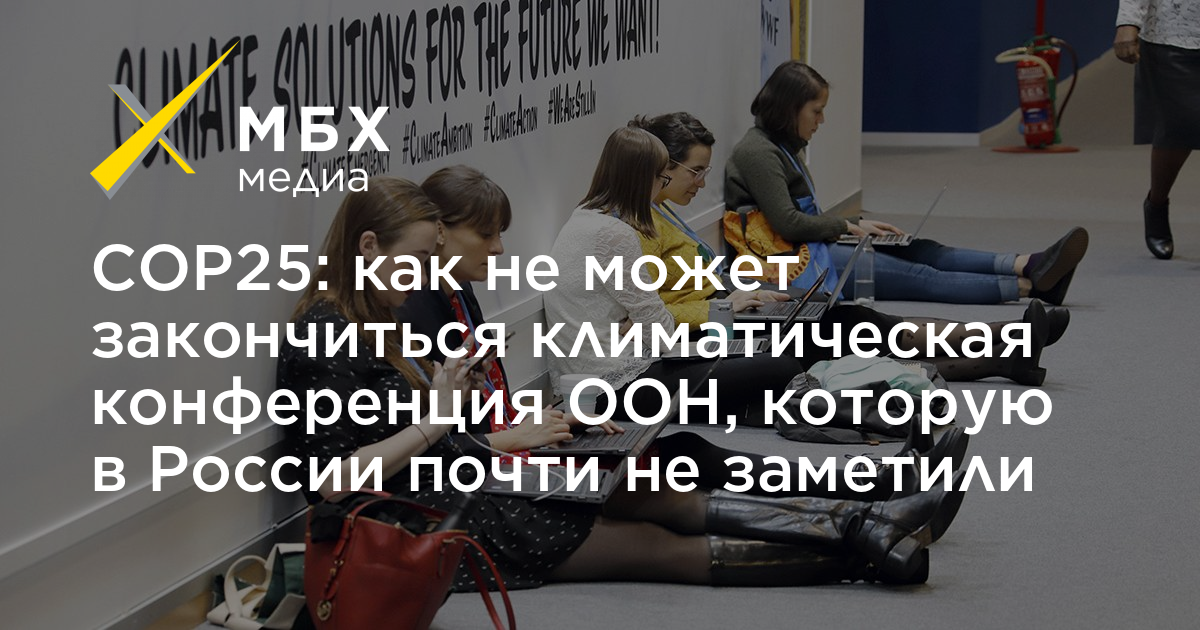 Ежегодно ООН проводит международную конференцию, посвященную вопросам изменений климата, эта — уже 25-я. Такие конференции называют COP, они собираются почти три десятка лет. Последняя стала известна как {tooltip}СОР25{end-texte}COP, или Conference of the parties (конференция сторон конвенции — «МБХ медиа».) — это верховный орган ООН по рассмотрению проблем климата, он возник в 1992 с принятием рамочной конвенции об изменении климата. Ежегодно его участники собираются для пересмотра конвенции и разработки новых правил и обязательств: каждая страна, подписавшая соглашение, обязуется приложить все усилия, чтобы избежать последствий изменения климата, и участвует в поиске решений, как уменьшить выбросы парниковых газов. COP уникальна тем, что это одно из немногих мероприятий по обсуждению климата, в котором участвуют бедные и развивающиеся страны — на форуме они могут высказываться и вести переговоры наравне с такими экономическими гигантами как Китай или США.{end-tooltip} и должна была пройти в Мадриде с 2 по 13 декабря, ее посетили до 25 тысяч человек из почти 200 стран.