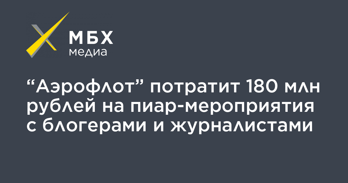 «Аэрофлот» потратит 180 млн рублей на организацию специальных PR-мероприятий. Тендер «МБХ медиа» обнаружило на портале госзакупок.