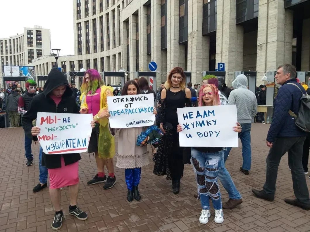 Двумя неделями позже, 10 августа, по заявлению тех же ресурсов из группы «Патриот», «митинг-концерт оппозиции в защиту московских кандидатов в депутаты перерос в настоящее фрик-шоу». В качестве доказательств — фото и видео мужчин и женщин в вызывающей одежде, с прическами в зеленых и фиолетовых тонах.