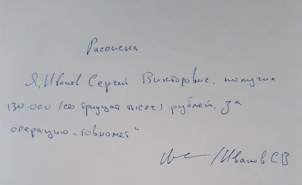 Расписка участника операции «Говномет». Услуги стоили 130 тысяч рублей