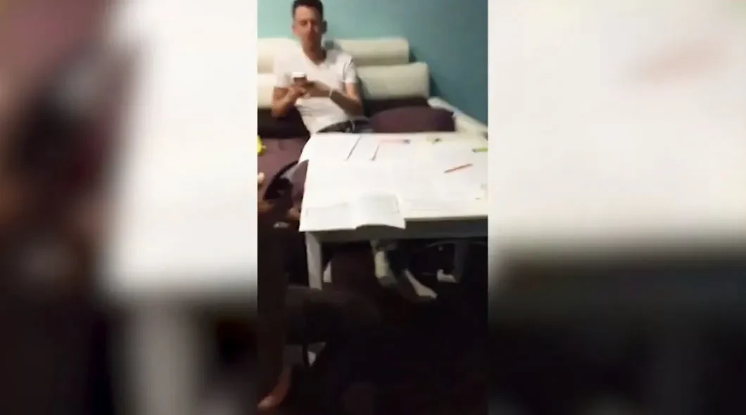 Скрин из «расследования» РИА «ФАН»: якобы один из рисовальщиков подписей за Любовь Соболь на том же диване, что и на селфи выше