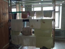 Центрифуга в прачечной всего одна, на 50 кг. Гладильных каландров (устройство для автоматической глажки белья) нет. Сушильной камеры – тоже. Вместо тэнов здесь деревянные перекладины, обмотанные полиэтиленом, плюс "тепловая пушка" и старинный калорифер.