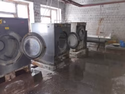 Машинки протекают. За цикл стирки вода успевает почти полностью вытечь вместе с порошком. Раньше в прачечной белье стирали хлоркой и кальцинированной содой. По словам Надежды, белье простирывалось нормально. Хлорку сняли с производства, стали давать таблетки "Первохлор", а потом перестали выдавать и их.