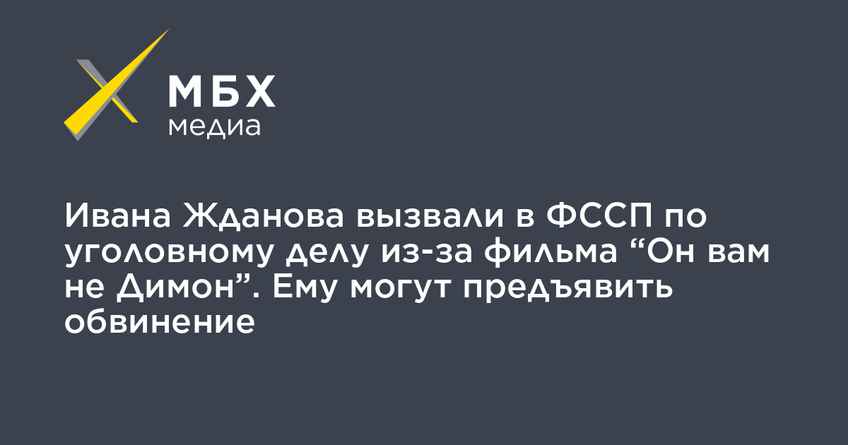 Директора Фонда борьбы с коррупцией Ивана Жданова вызвали в московское управление Федеральной службы судебных приставов по уголовному делу о злостном неисполнении решения суда (часть 2 статьи 315 УК) из-за фильма «Он вам не Димон». Об этом сообщил «МБХ медиа» адвокат Владимир Воронин.