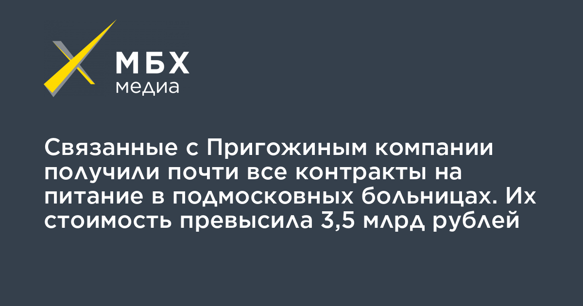Связанные с Пригожиным компании получили почти все контракты на питание в подмосковных больницах. Их стоимость превысила 3,5 млрд рублей