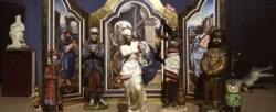 Как случается на каждом настоящем фестивале, участники вступают в непредвиденные организаторами диалоги. Вот у Рау тот парень, что сыграет Ихсана, Том Аджиби, хвастает тем, что может имитировать языки без малейшего их знания. А спектакль Васи Березина "Августин. Исповедь" играется на латыни ("спектакль для мёртвых на мёртвом языке"), но пойди проверь, правда ли это латынь или её имитация. Березин участвует в NET'е не в первый уже раз, что понятно: это, кажется, единственный из молодых режиссёров, кто избегает любого повторения; оригинальность – его второе имя. Есть у этой оригинальности и оборотная сторона: контакт с залом, ответная реакция – то, что основателя "Бинарного биотеатра" заботит мало. В "Августине", который играется в обычном, не разделённом на сцену и кресла зале, этакой большой гостиной Башмет Центра, действие идёт на двух полюсах; музыканты – с одной стороны, артисты-перформеры – с другой. Я сидел предельно близко к артистам и максимально далеко от музыкантов, поэтому не разглядел маленького пёсика у аккордеонистки (а лай принял за компьютерный саунд-эффект). Так что не уверен, можно ли считать моё восприятие "Исповеди" полноценным – без живой-то собачки, только с живыми людьми, пробовавшими латынь религиозных текстов (поверю Березину на слово) на способность к модификации – в экзальтированную арию, монотонный рэп, бытовое говорение или причудливое актёрство.