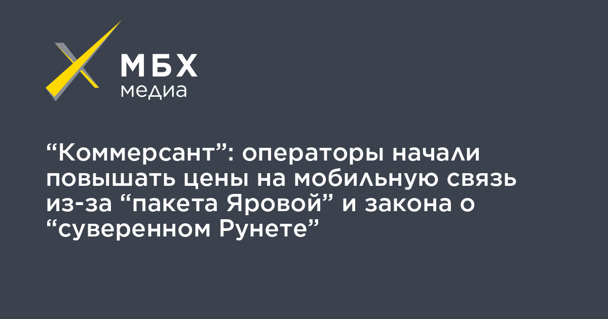 «Коммерсант»: операторы начали повышать цены на мобильную связь из-за «пакета Яровой» и закона о «суверенном Рунете»