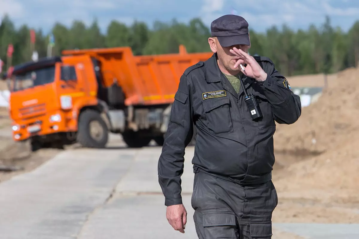 Следующий пункт посещения — территория стройки «Технопарка». Сейчас вся техника покинула Шиес, вместе с ОМОНом и рабочими. На месте остались только охранники ЧОП «Гарант Безопасности». С августа территория вырубки, на которой в ангарах живет ЧОП, обнесена забором и прогуляться по ней, как в былые времена, невозможно. Но оказалось, это правило не работает, если на Шиес приезжают федеральные политики. У входа на территорию нас встречает начальник охраны Игорь Попов. На вопросы администратора канала «Омбудсмен полиции» Владимира Воронцова, почему охрана работает без нагрудных знаков и в балаклавах, Попов отвечает, что эти люди на данный момент не работают, это их нерабочее время, а значит, они выглядят как хотят.