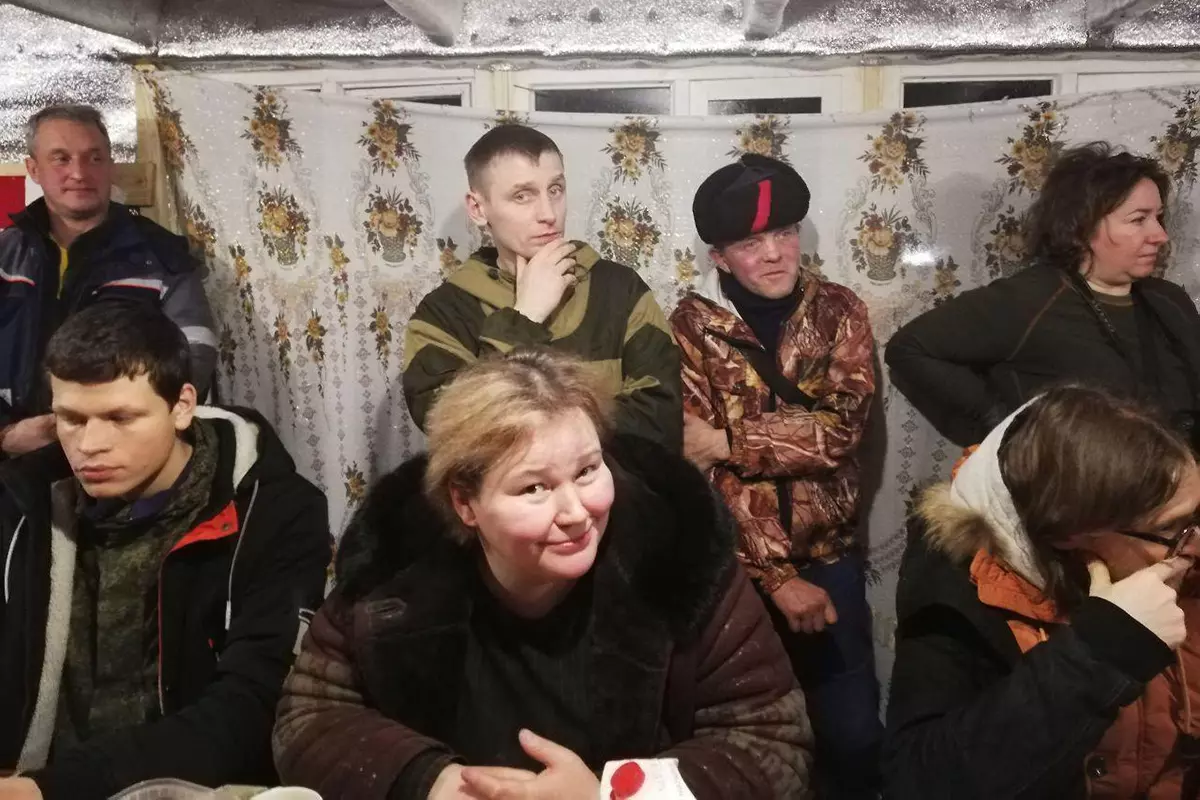 В кухне за большим столом нас ждут активисты. Печь горячо растоплена, становится весело и жарко. Угощаемся гречей с котлетами, пьем чай с тортом. Правила строгие – мусор здесь разделяют, посуду за собой каждый моет сам. В лагере человек пятьдесят, большая часть из них женщины и пенсионеры.