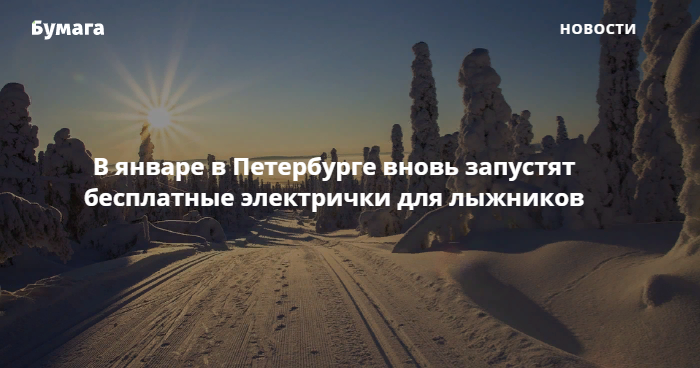С 5 января в Петербурге запустят ежегодные бесплатные электрички для лыжников. Информация об этом появилась на сайте администрации города.