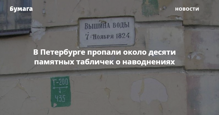 В Петербурге исчезли не менее десяти памятных табличек о наводнениях. Об этом сообщает «Петербургский дневник».