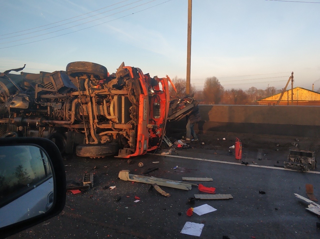 Согласно информации областного УМВД, машины столкнулись примерно в 9.30 на 163 километре федеральной трассы. Водитель большегруза MAN выехал на встречную полосу и столкнулся с машиной марки КамАЗ. Водитель КамАЗа был госпитализирован с многочисленными травмами.