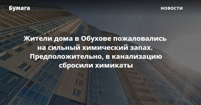 Жители дома в Обухове пожаловались на сильный химический запах. В «Водоканале» предполагают, что в канализацию сбросили химикаты