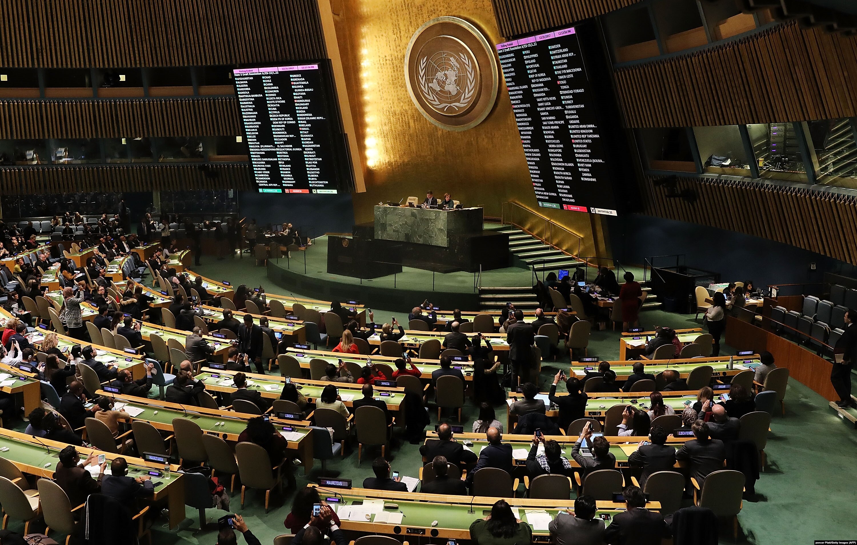 На заседании Генеральной Ассамблеи ООН принята Резолюция о защите прав человека в аннексированном Россией Крыму. Она сразу же вступила в силу.