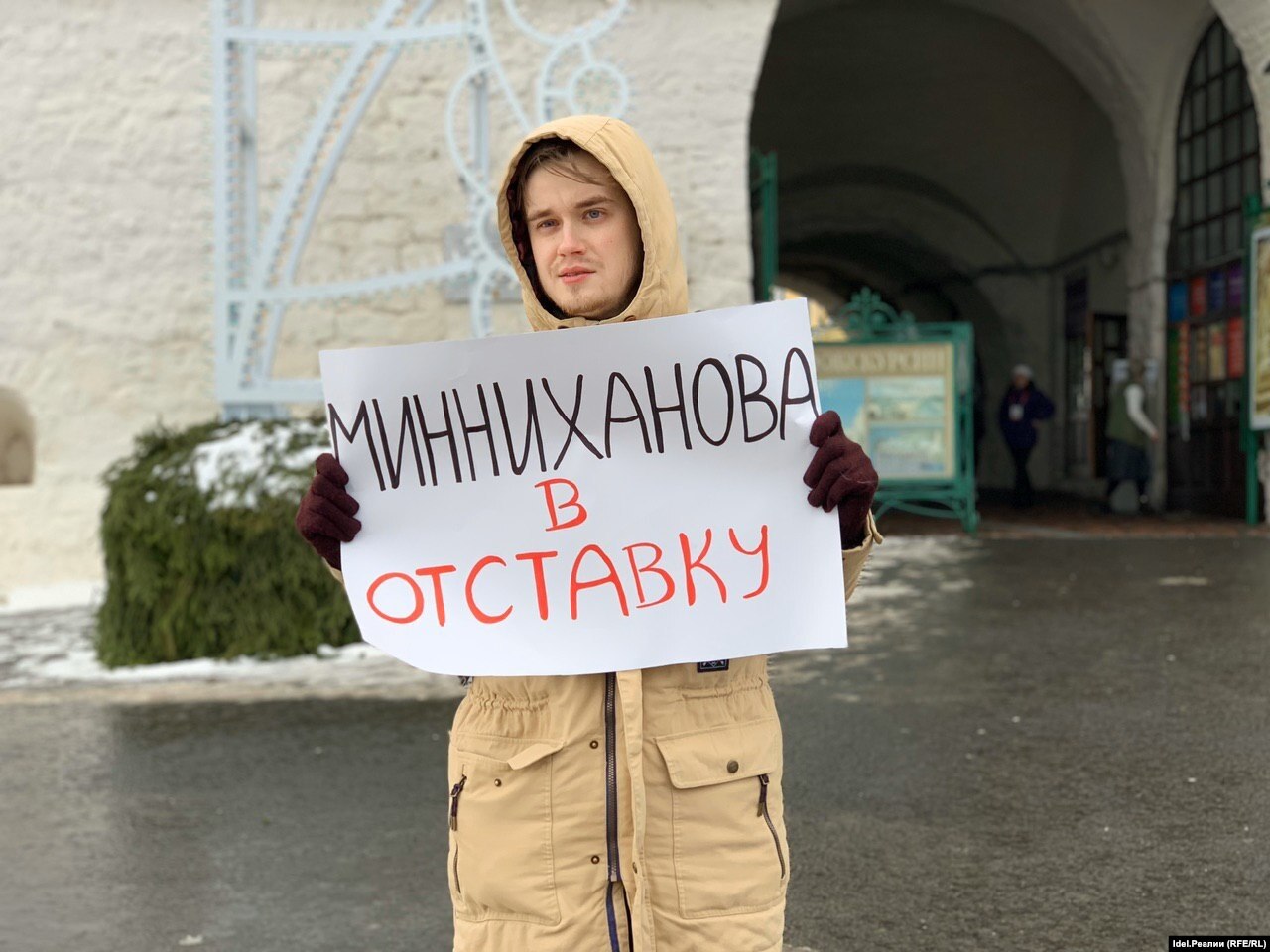 "Минниханова в отставку!" У Казанского Кремля прошли одиночные пикеты