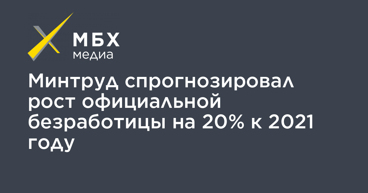 Минтруд спрогнозировал рост числа официально зарегистрированных безработных на 20% к 2021 году. Об этом пишут «Известия» со ссылкой на доклад ведомства.
