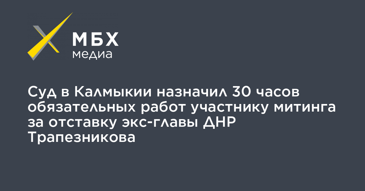 Суд в Элисте назначил 30 часов обязательных работ активисту Саналу Молоткову — участнику митинга за отставку экс-главы ДНР Дмитрия Трапезникова, который был назначен мэром города. Об этом Молотков сообщил «МБХ медиа».