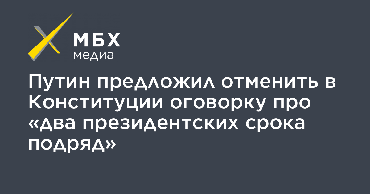 Путин предложил отменить в Конституции оговорку про «два президентских срока подряд»