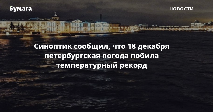 В Петербурге 18 декабря был побит температурный рекорд. Об этом рассказал ведущий специалист центра «Фобос» Михаил Леус.
