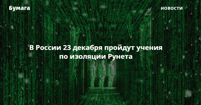 В понедельник, 23 декабря, в России пройдут учения в рамках закона об изоляции Рунета. Об этом сообщает «Медуза» со ссылкой на Министерство связи.